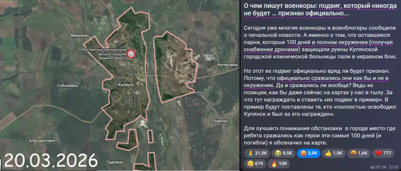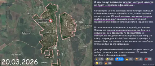 Ситуация в Купянске по-прежнему представляет собой тактические качели, когда успех чередуется. Причём каких-либо крупных территориальных приобретений на Купянском направлении примерно с середины февраля нет ни у ВС РФ, ни у ВСУ. Противник, бросавший всё это время в бой новые и новые резервы, уже не способен «прибавить», или же сознательно взял паузу, пытаясь удержать то, что смог взять территориально.