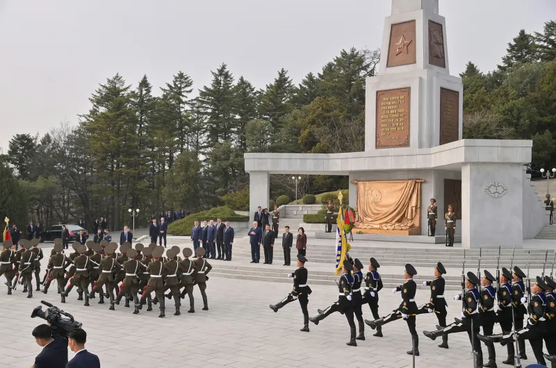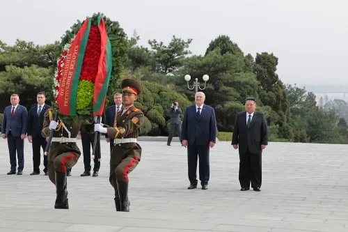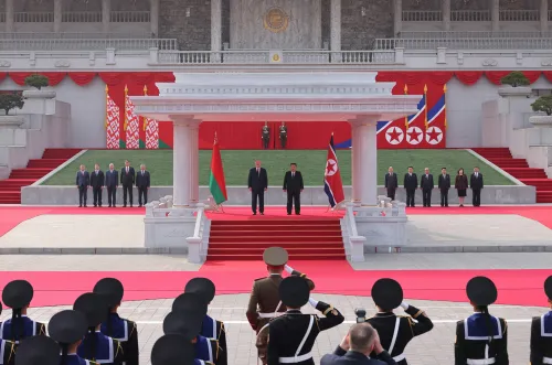Визит белорусского лидера в КНДР продолжался два дня и сегодня завершился. В этой стране его принимали в подчеркнуто торжественной обстановке. Его с особенной теплотой и уважением встречали высшие должностные лица республики, включая главу государства Ким Чен Ына, а также местные жители. На главной площади столицы страны в честь белорусского президента выстроился почетный караул и играл военный оркестр.