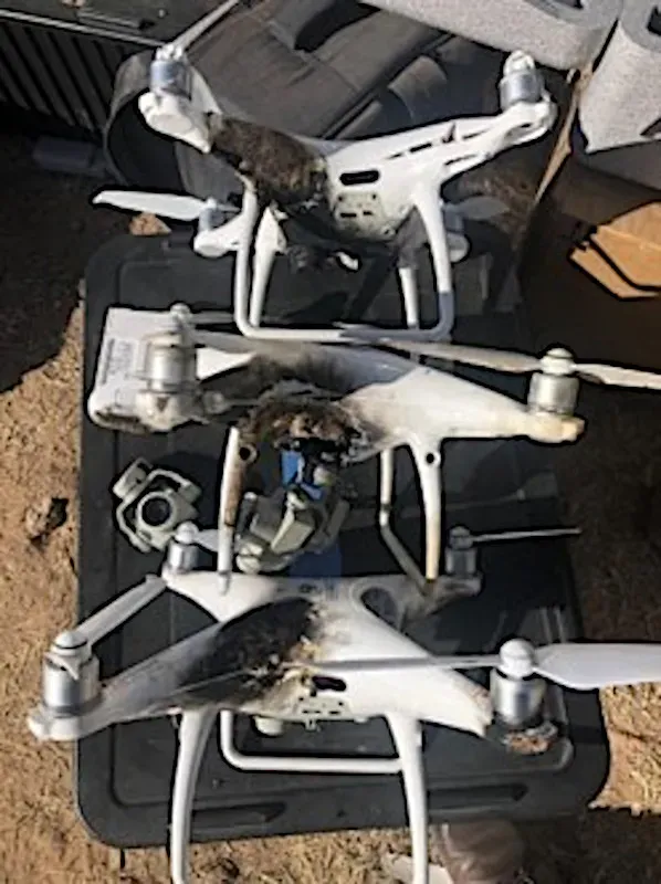 Лёгкие БПЛА после воздействия 20-киловаттного лазера первой версии Locust