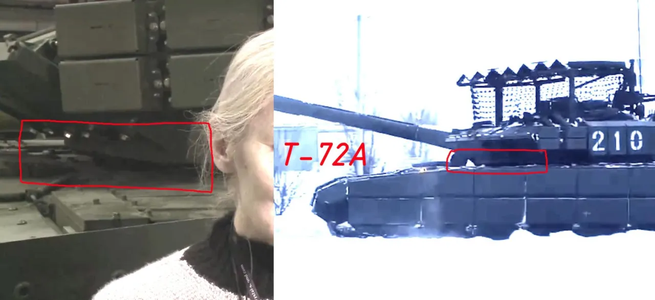 Скриншоты из видеороликов, на которых запечатлена особенность скул башен модернизированных Т-72А, разлетевшиеся по западным соц.сетям. Присутствует кадр из видео "Уралвагонзавода".