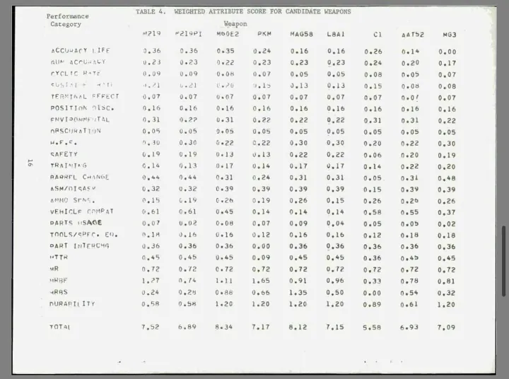 Таблица атрибутивной оценки испытываемых образцов. Источник: dtic.mil