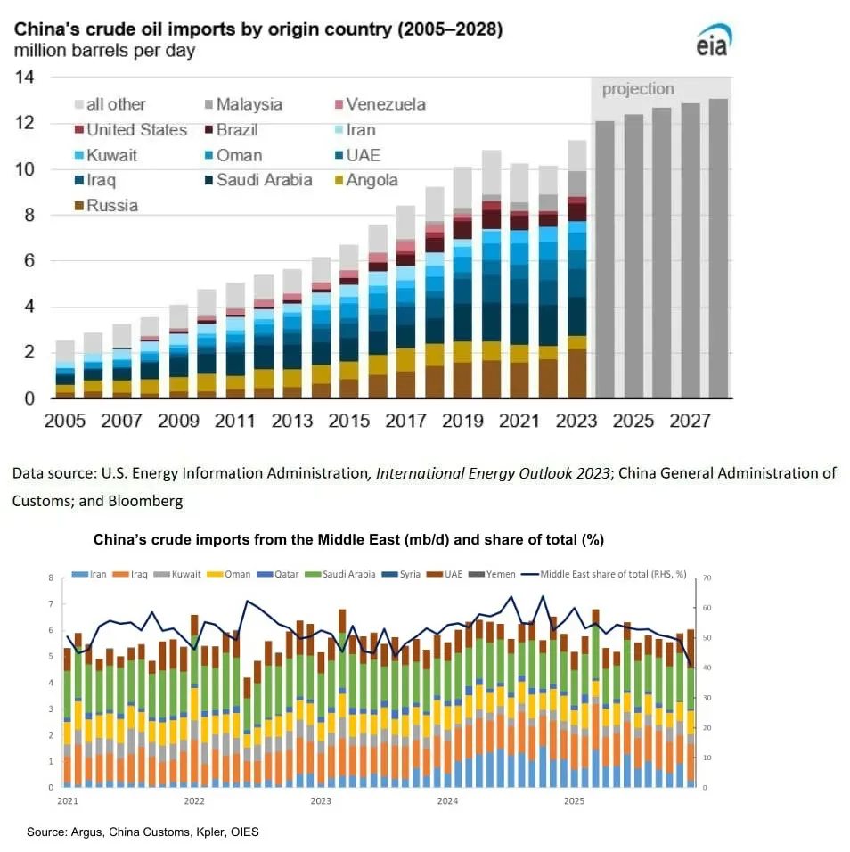 А связано это с тем, что почти половина всего импорта нефти в КНР идёт из стран Персидского залива. В этом смысле для США лучше даже не победа, а продолжительный конфликт в регионе, который приведёт к приостановке поставок на длительный срок, как за счёт перекрытия Ираном Ормузского пролива, так и за счёт уничтожения сторонами конфликта нефтяной промышленности в регионе.