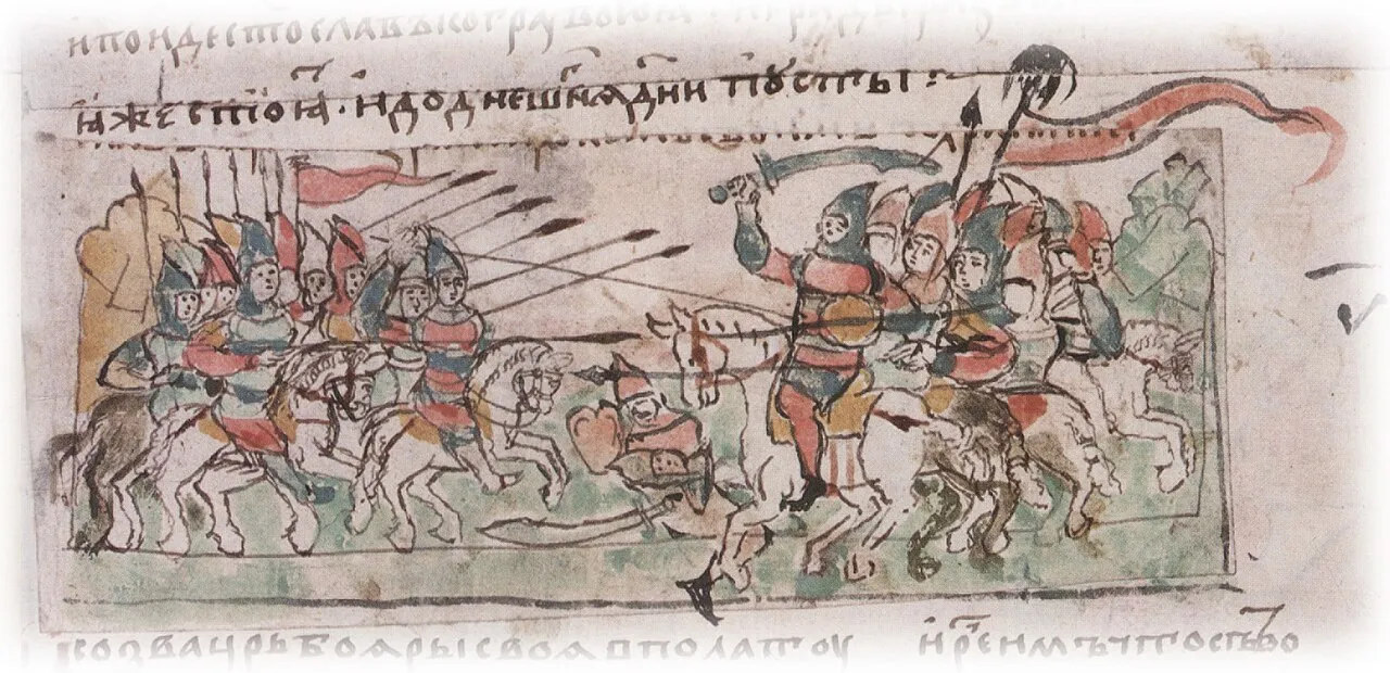Сражение русских с греками и поражение греков. Миниатюра Радзивилловской летописи