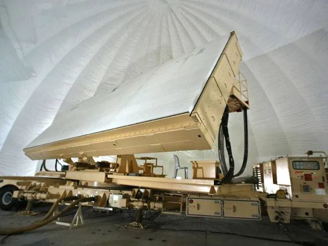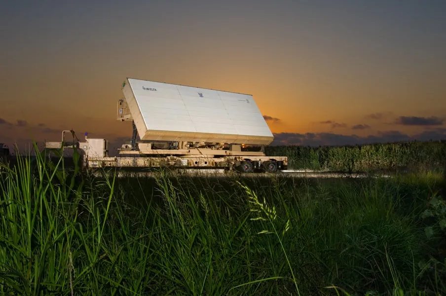 Антенный пост РЛС EL/M-2080 Green Pine размещённый внутри защитного радио прозрачного купола