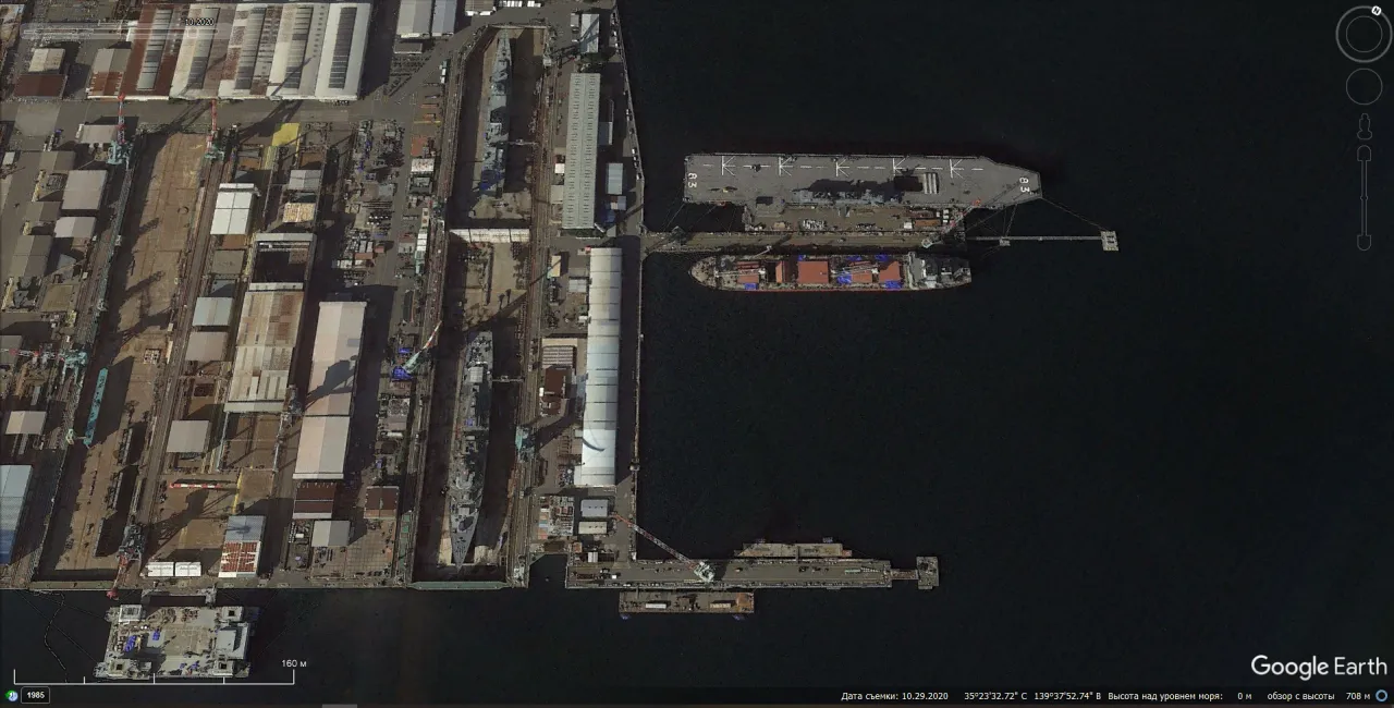 Спутниковый снимок GoogleEarth: верфь Yokohama Shipyard Isogo Works в городе Иокогама. Снимок сделан в октябре 2020 года