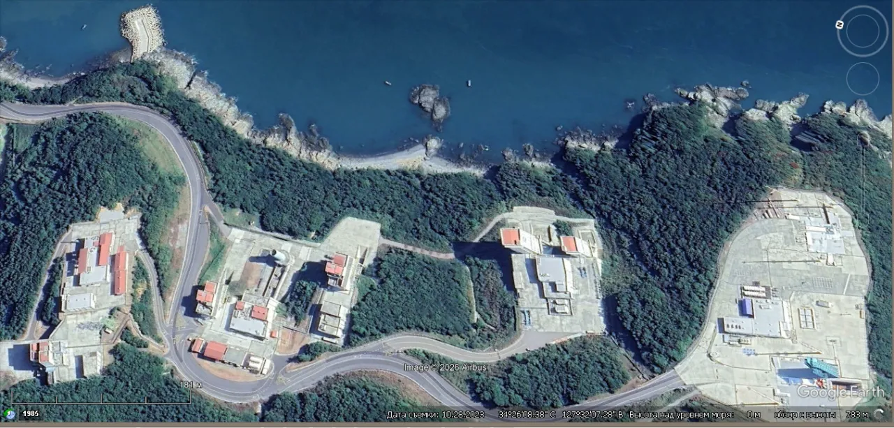 Спутниковый снимок GoogleEarth: сооружения Ракетного центра Наро на острове Венародо. Снимок сделан в октябре 2023 года