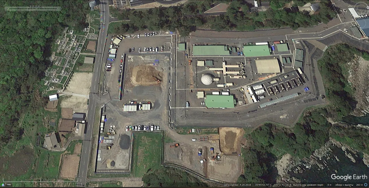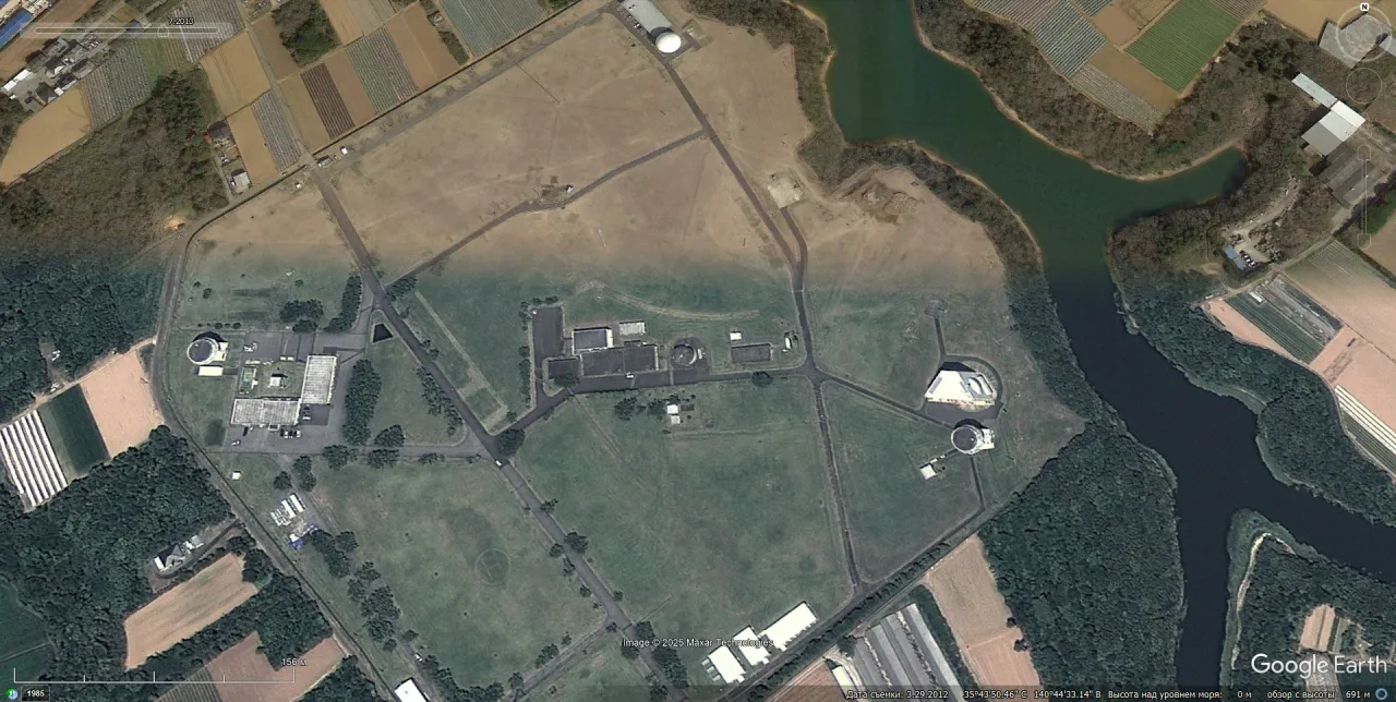 Спутниковый снимок GoogleEarth: площадка для испытаний РЛС к северо-востоку от города Асахи. Снимок сделан в июле 2013 года