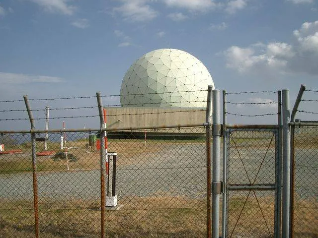 Антенна РЛС J/FPS-3 под радиопрозрачным куполом