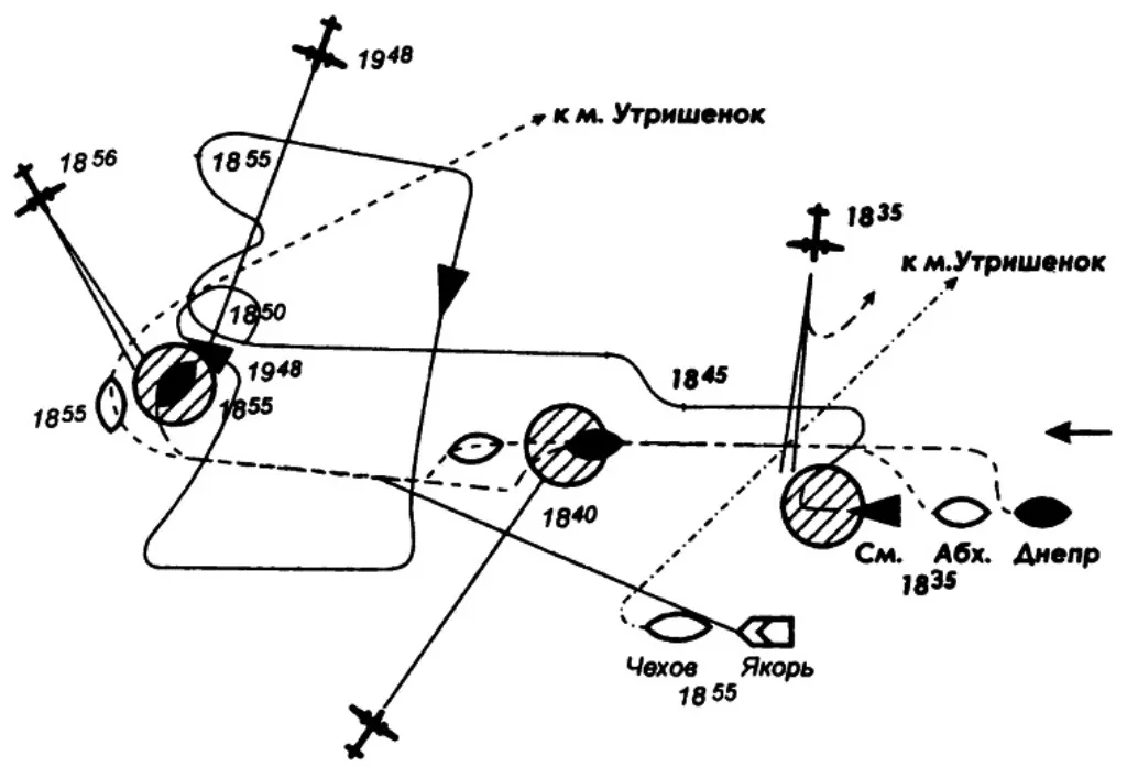Схема торпедной атаки санитарного транспорта «Днепр» немецкой авиацией