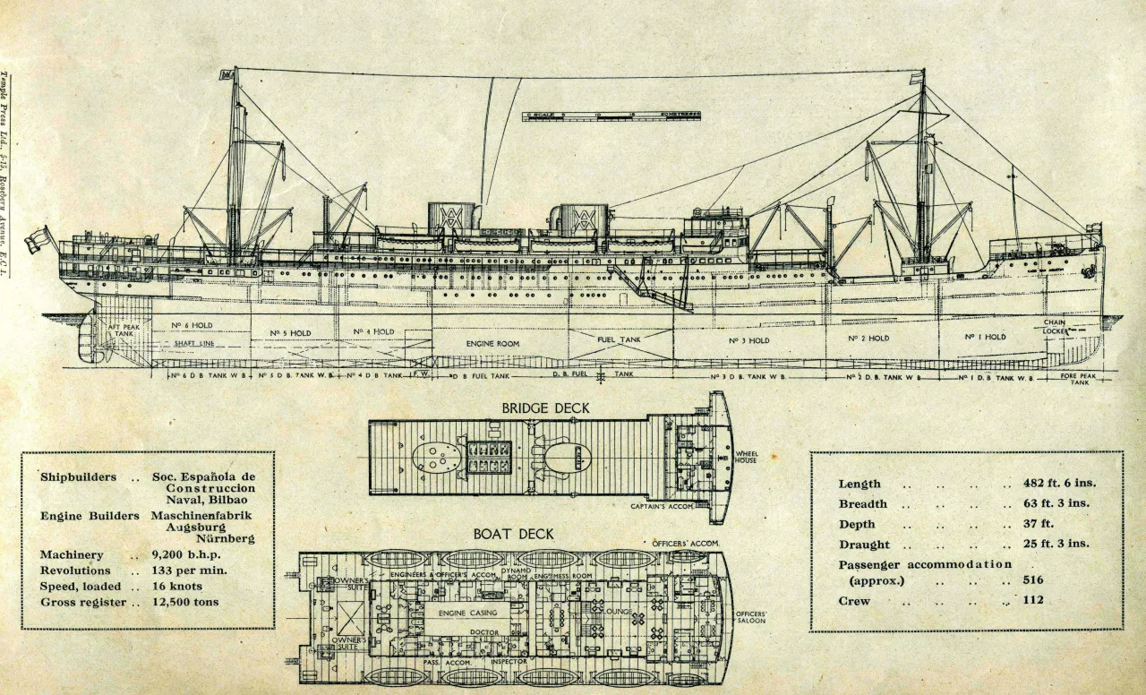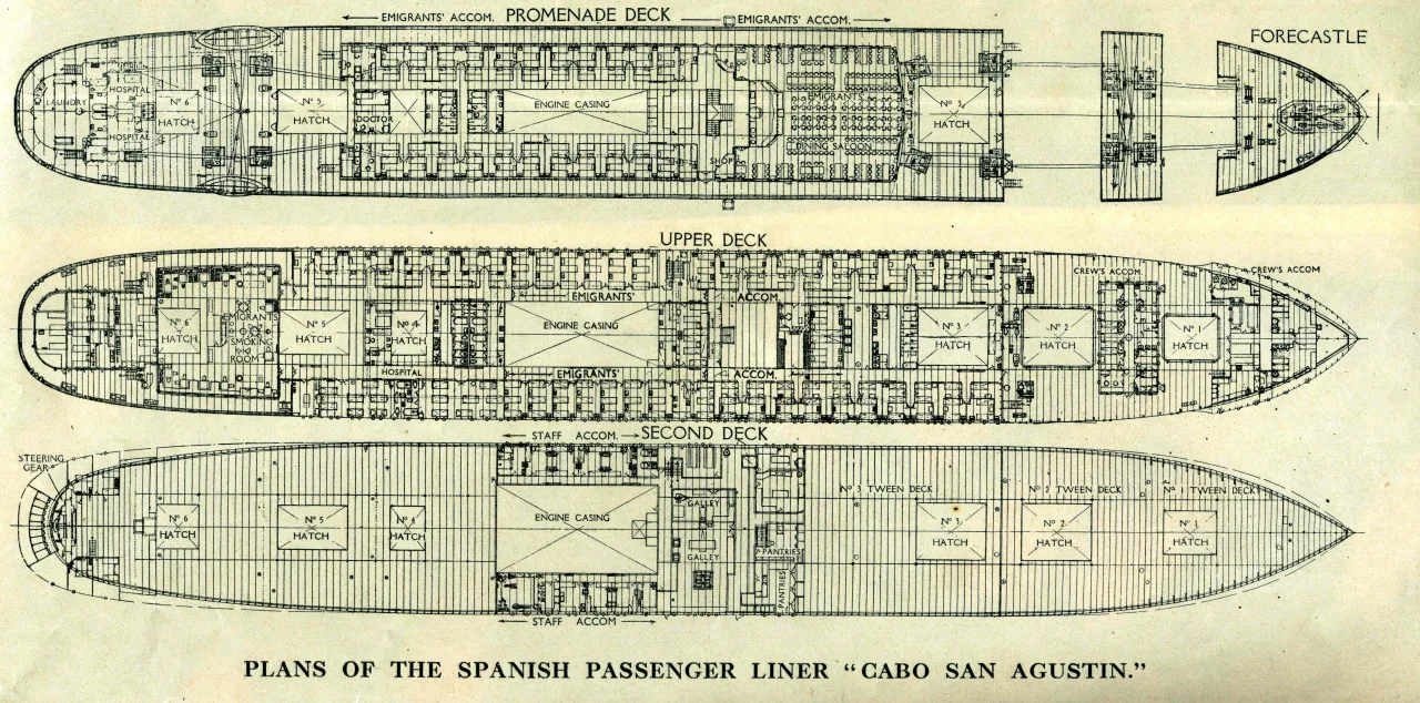 Планы общего расположения «Cabo San Agustín» (из журнала «The Motor Ship», апрель 1931)