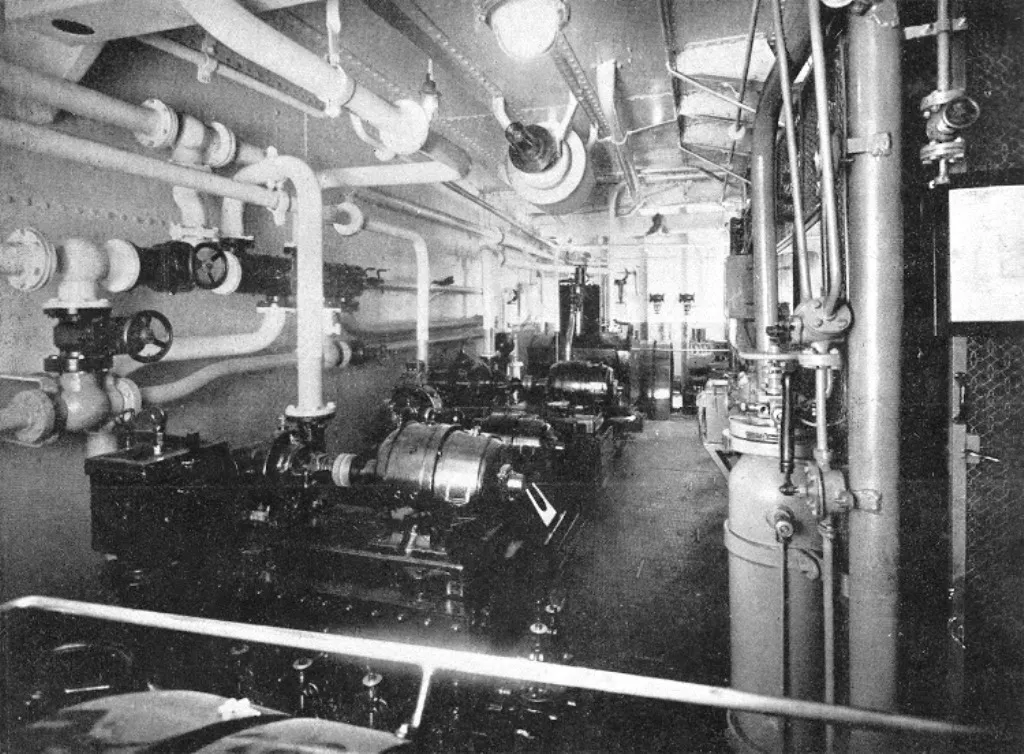 Главная силовая установка производства английской фирмы J.G. Kincaid & Co. Ltd (Глазго) состояла из паровой машины тройного расширения и трех водотрубных котлов на угольном отоплении с рабочим давлением пара 12,7 кг/см².