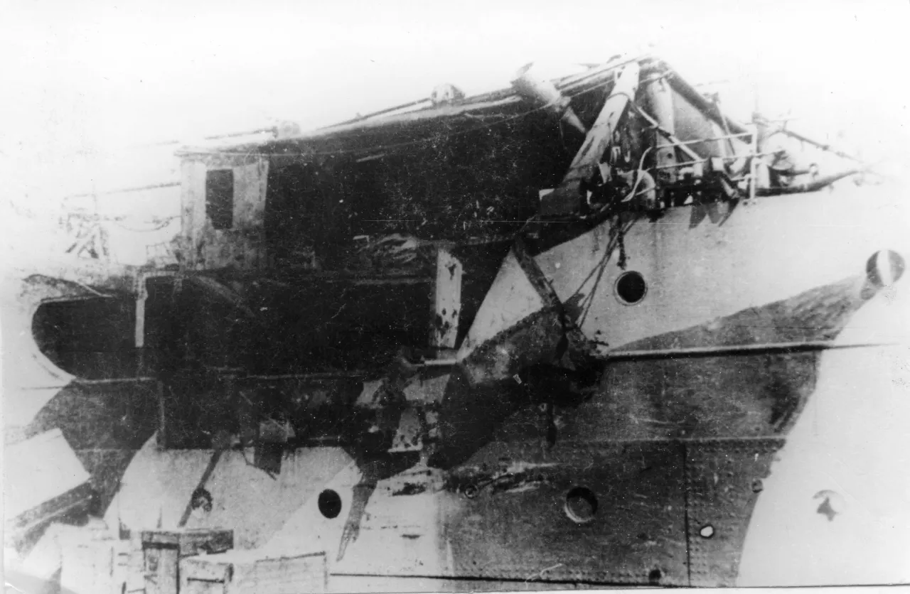 «Львов» - повреждения от попадания немецкой авиабомбы