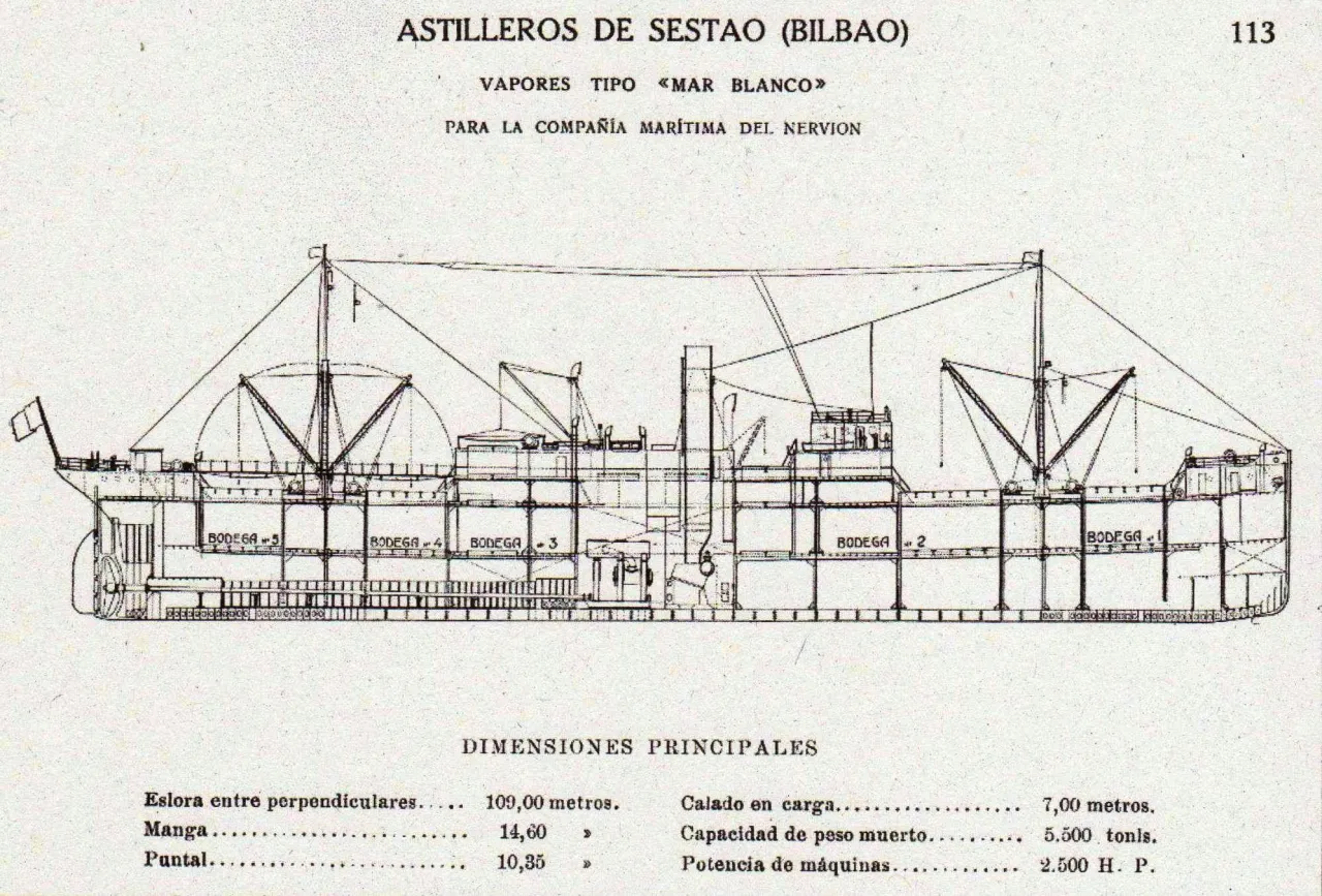 В 1920 году для испанской судоходной компании Compañía Marítima del Nervión на верфи фирмы Sociedad Española de Construcción Naval Sestao были построены два однотипных парохода «Mar Caribe» и «Mar Blanco». Суда предполагалось использовать для доставки хлопка в тюках из портов Мексиканского залива в порты Средиземноморья.