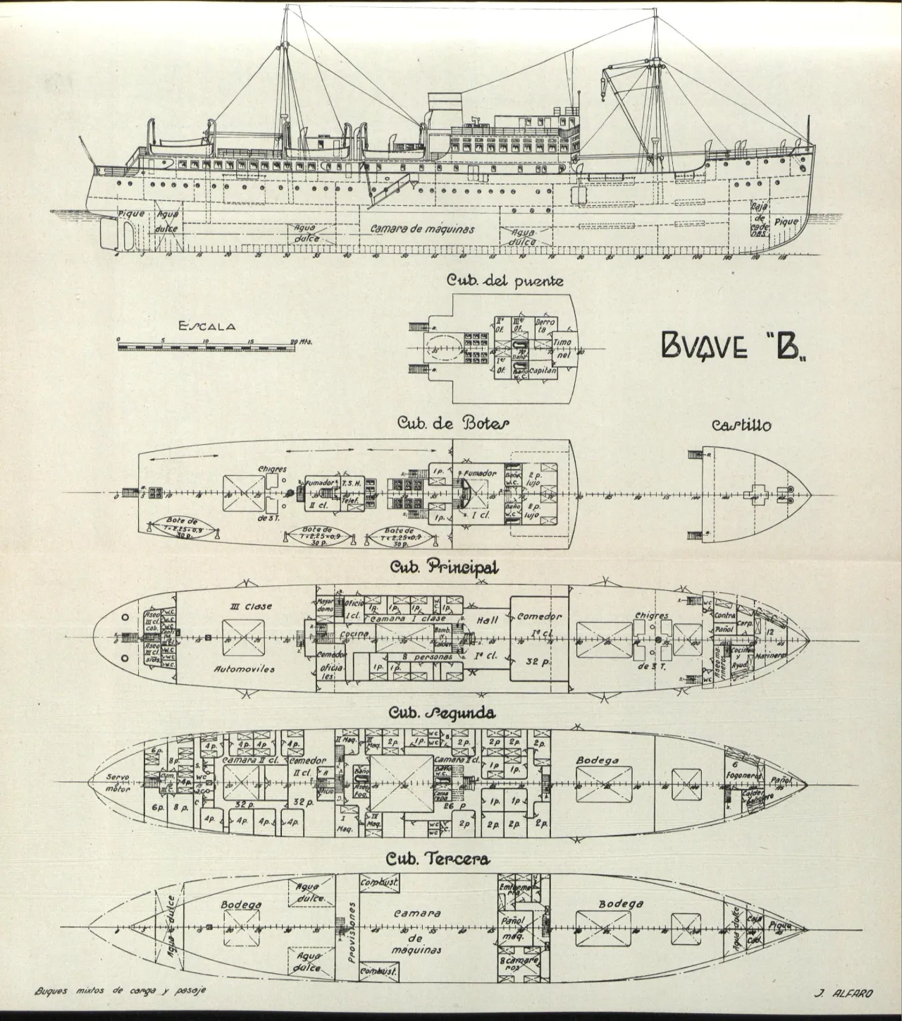 План общего расположения судов типа «Ciudad de Ibiza» (Revista de Ingenieria Naval, Abril de 1934)