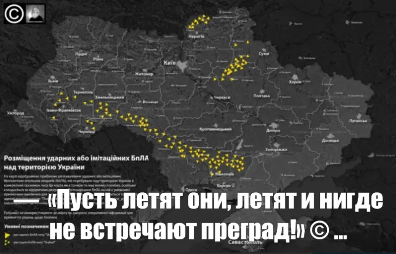 Украинские мониторинговые каналы сообщают о «роях дронов», которые следуют через Херсонскую область (оккупированную часть) и с севера в сторону Черниговской, которая, скорее всего, будет пропущена транзитом, и БПЛА полетят далее на запад. Беспилотники следуют в Ивано-Франковскую область. Это Прикарпатье, сюда ранее прилетало довольно редко.