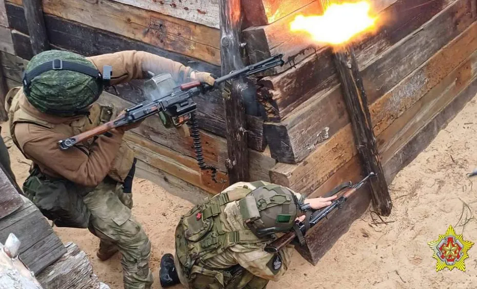 В общем выставить руки в окоп и дать очередь, вполне эффективно можно и без прицела. Белорусские военные отрабатывают действия по зачистке окопов противника