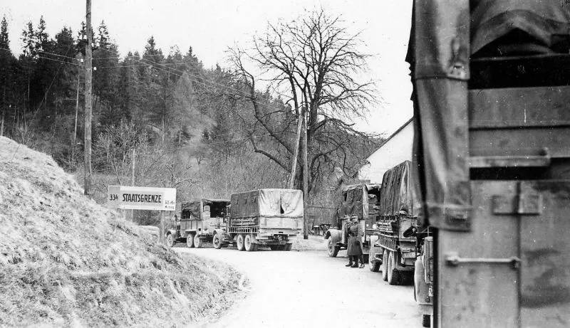 Колонна 1-й горнострелковой дивизии вермахта на границе, перед вторжением в Югославию
