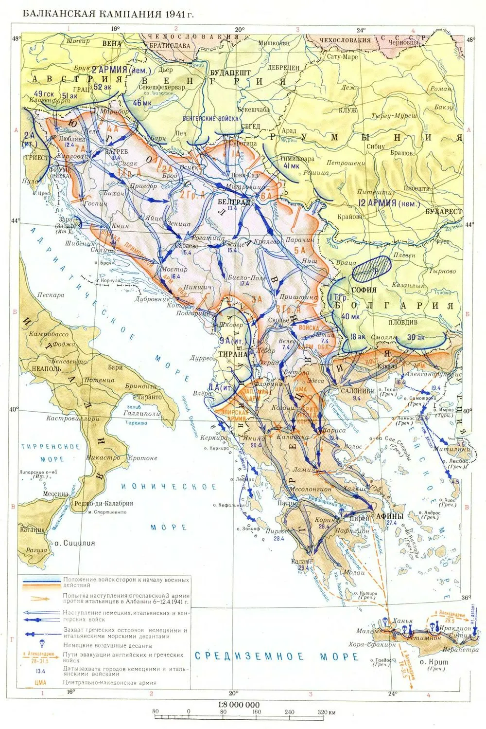 Тем временем Британия использовала нарушение нейтралитета Греции. Лондон заключил союз с Афинами. Британцы высаживают войска на островах и на материке. С греческих аэродромов они могли бомбить нефтяные месторождения Румынии — основной источник топлива для германских вооруженных сил, панцерваффе и люфтваффе. Также возникала угроза южному флангу будущего Русского фронта, который уже вовсю формировался. Это была угроза стратегического уровня, и Гитлер это прекрасно понимал.