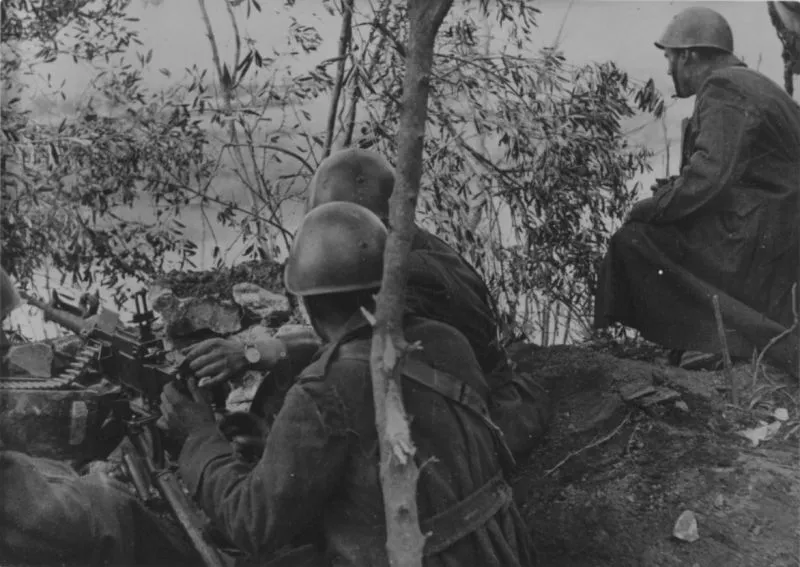 Итальянские солдаты у 8-мм пулемета Фиат-Ревелли М35 на позиции в Греции. 1941 год
