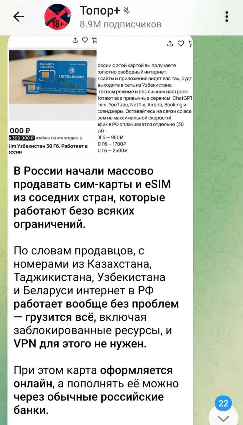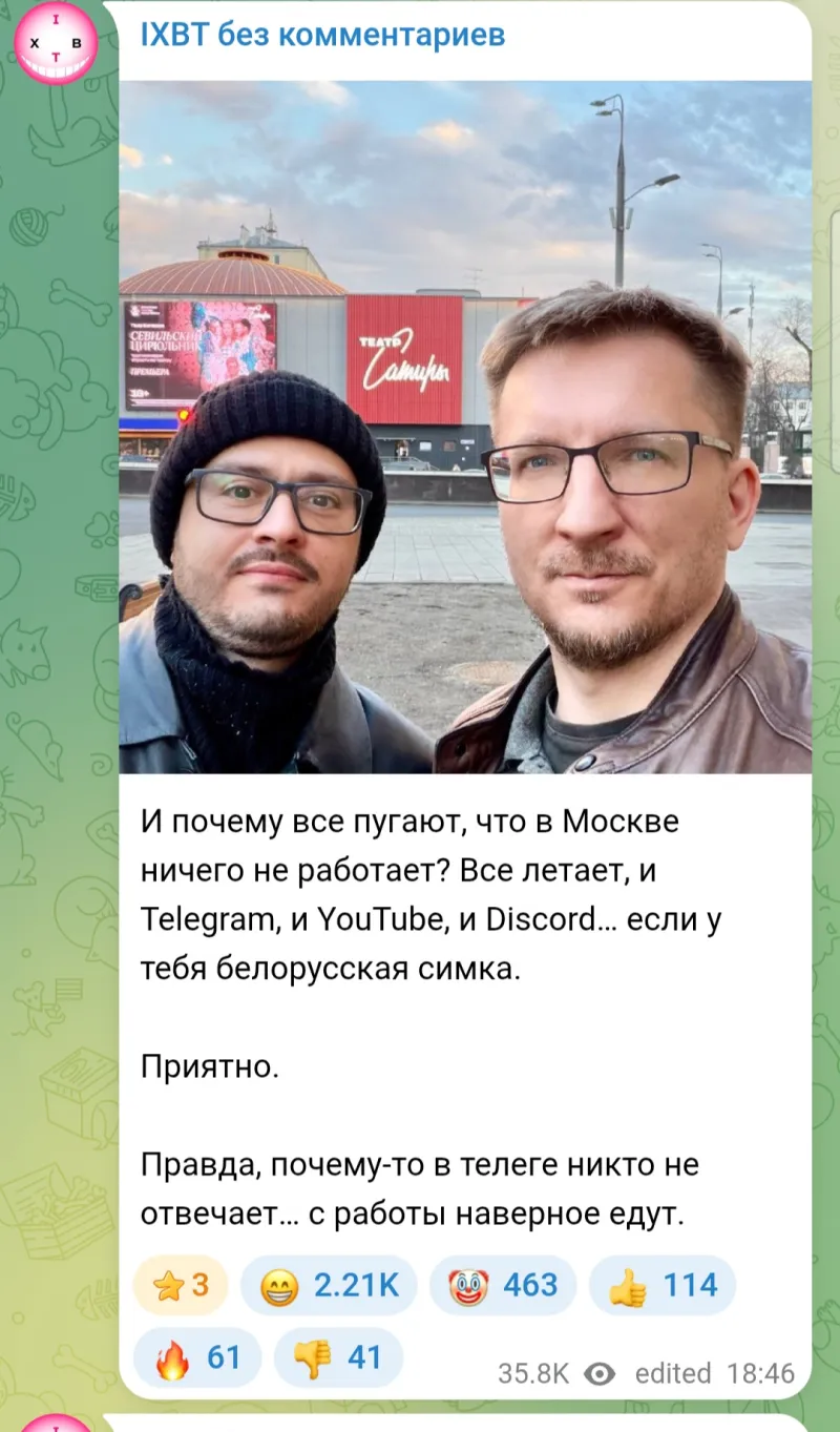 Пишет, что, несмотря на блокировку, не менее 65 миллионов россиян продолжают пользоваться мессенджером ежедневно с использованием VPN и других способов обхода ограничений, в том числе предусмотренных в самой платформе. При этом вчерашний сбой в работе банковских сервисов в РФ Дуров увязал с попытками правительства закрыть доступ к VPN.