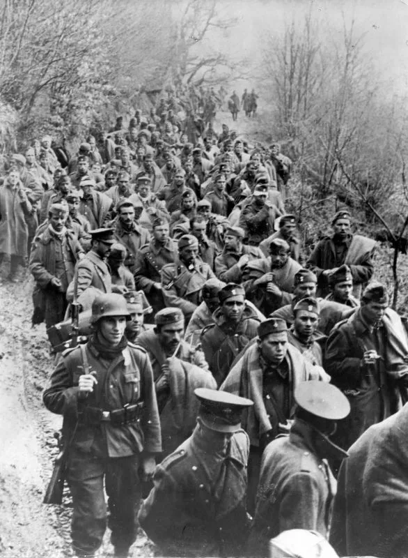 Пленные югославские солдаты в поле