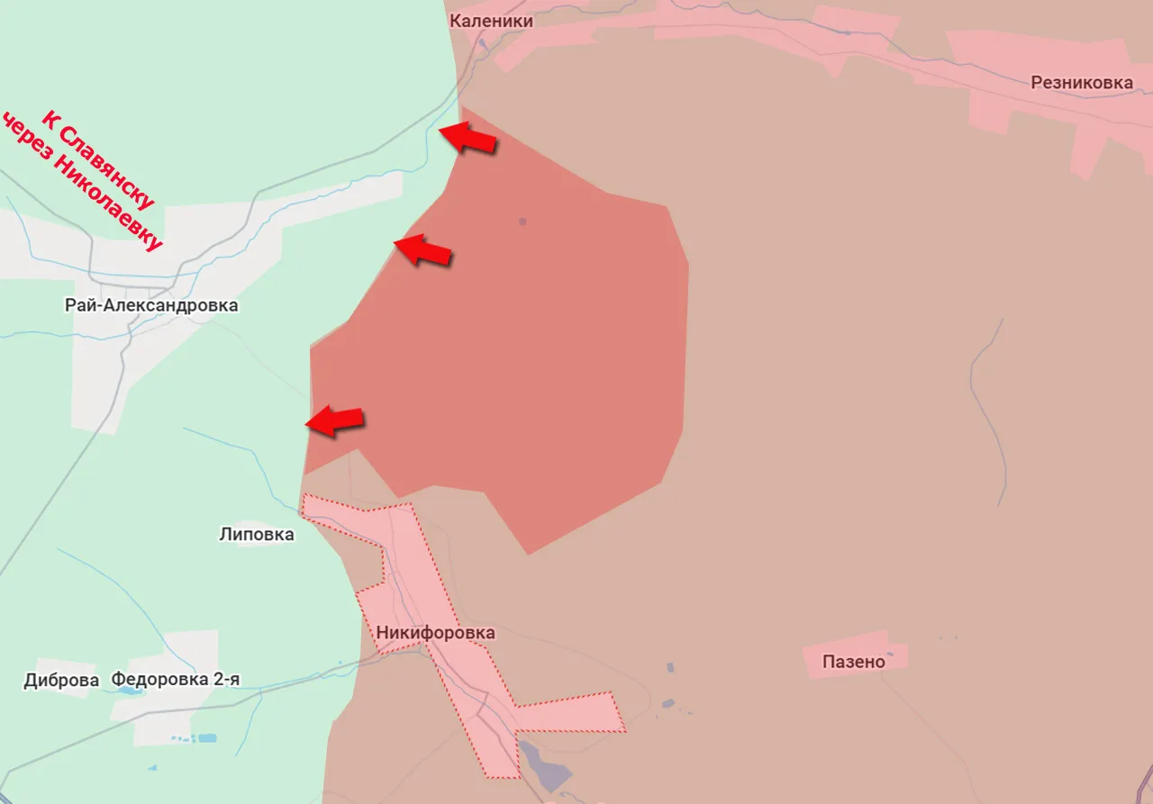 Таким образом армия России закрыла так называемый Никифоровский выступ, выйдя непосредственно к Рай-Александровке, за которой - дорога на Николаевку, входящую в Славянско-Краматорскую агломерацию.