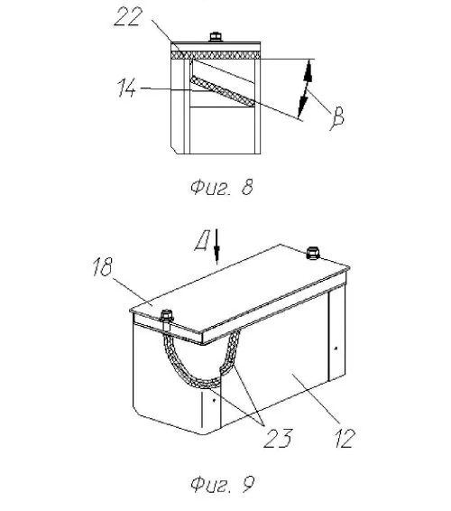 Модуль четвёртого типа (в патенте — четвёртого комплекта). 14 — сэндвич NERA, 18 — крышка, 22 — сэндвич NERA или элементы динамической защиты, 23 — бронирование стенок контейнера