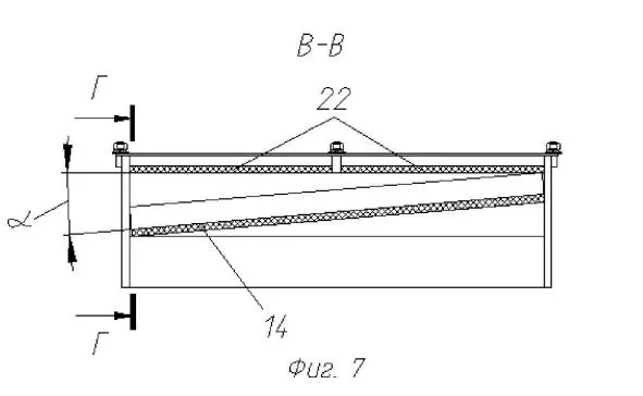 Модуль третьего типа (в патенте — третьего комплекта) для защиты боевого и моторно-трансмиссионного отделений. 14 — сэндвич NERA , 19 — крышка, 22 — сэндвичи NERA, либо элементы взрывной динамической защиты.