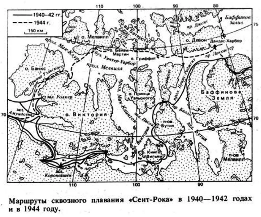 Маршруты перехода шхуны «St. Roch» Северо-Западным проходом в 1940-42 и 1944 годах