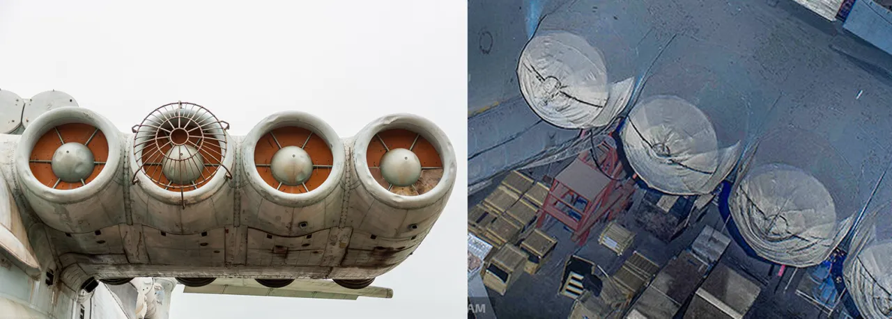Осталось самое слабое в плане стоимости место экраноплана — 8 двигателей. Ну как слабое, вообще-то эта гирлянда была нужна для обеспечения взлёта экраноплана в таких условиях, которые и не снились не то что паркетному Ил-86, слегка более проходимому Ан-124, а и даже вездеходному Ил-76.