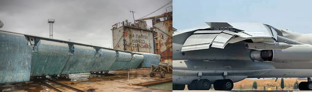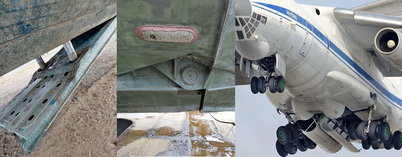 Кроме того, есть пятиопорное многоколёсное шасси, причём именно в его конструкции используются самые сложные и массивные титановые детали. У ЭП «Лунь» есть лишь некое подобие шасси — гидролыжа, сложность, а значит, и стоимость которой не идёт ни в какое сравнение с шасси Ил-76. Ну и сварка, само собой.
