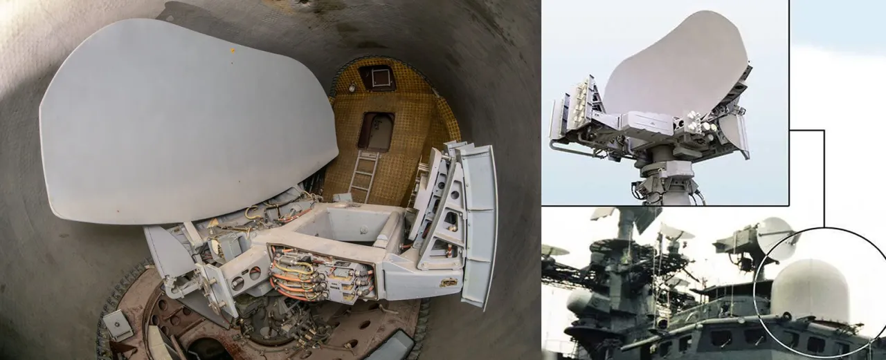 Это буквально единственное в сети фото РЛС «Позитив» с параболической антенной, остальные уже с ФАР, принятые на вооружение заведомо позже постройки МРК ЭП «Лунь» и других советских МРК/РК. Так же нет фото антенн, хоть как-то похожих на антену «обзорной» РЛС «Луня»