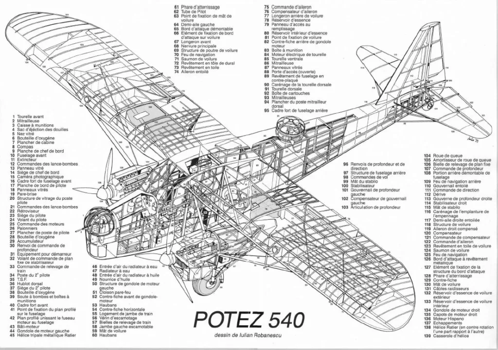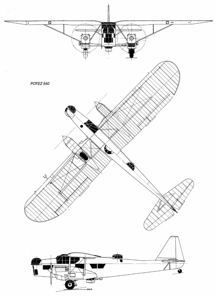 Извините за длинную цитату, но, думаю, она того стоила. По другим источникам, первоначальный разговор состоялся еще в 1932 году. В любом случае не приходится удивляться тому, что первый прототип, т. е. Potez 540-01, опередил конкурентов более чем на полгода при гораздо меньшей цене. В отношении технологии это был шаг назад для фирмы: после цельнометаллического Potez 39 — смешанная конструкция, гораздо больше соответствующая древнему Potez 25 с преобладанием дерева и фанеры и тканевой обшивки для плоскостей. Не потому, что во Франции не хватало алюминия, вполне хватало, тем более для выпуска 200-250 машин. Скорее, для быстрейшей организации производства и упрощённого ремонта, в т. ч. в колониях. А что долговечность будет ниже — так техника развивалась настолько быстро, что о долгой эксплуатации никто не думал.
