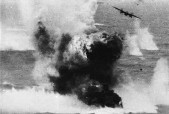 «Аматсукадзэ» под воздушными атаками во время своего последнего боя, 6 апреля 1945 года