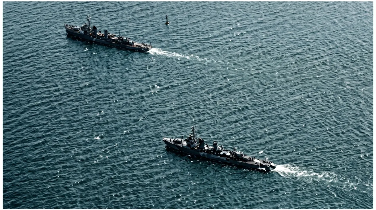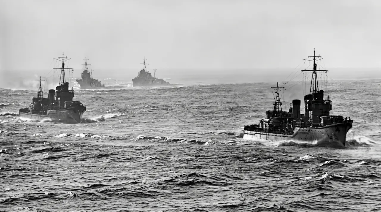 «Уракадзе» на учениях в проливе Бунго, 16 октября 1941 года. Справа от него следуют «Исокадзе», «Таникадзе» и «Хамакадзе», а слева плывут «Сигуре», «Ширацую», «Акацуки», и «Хибики»