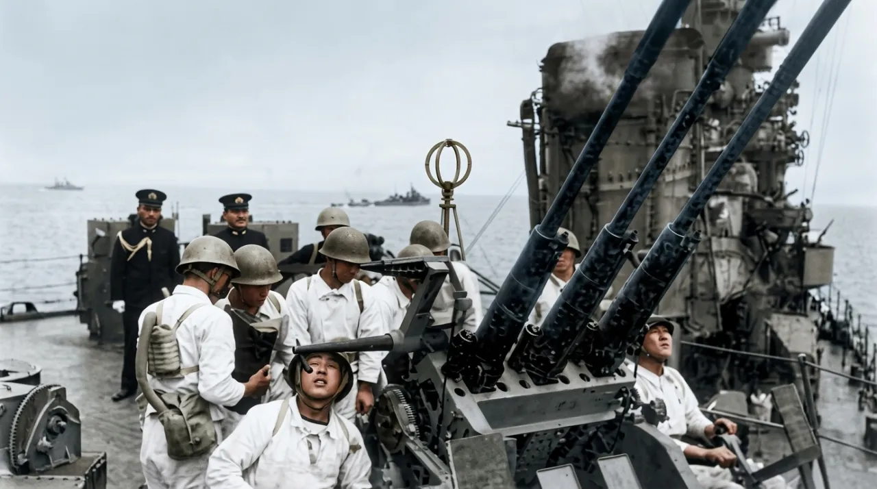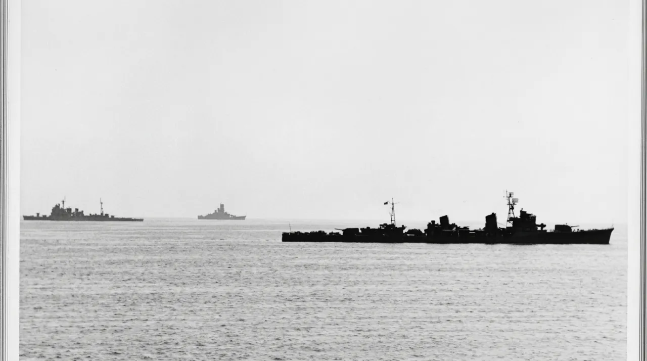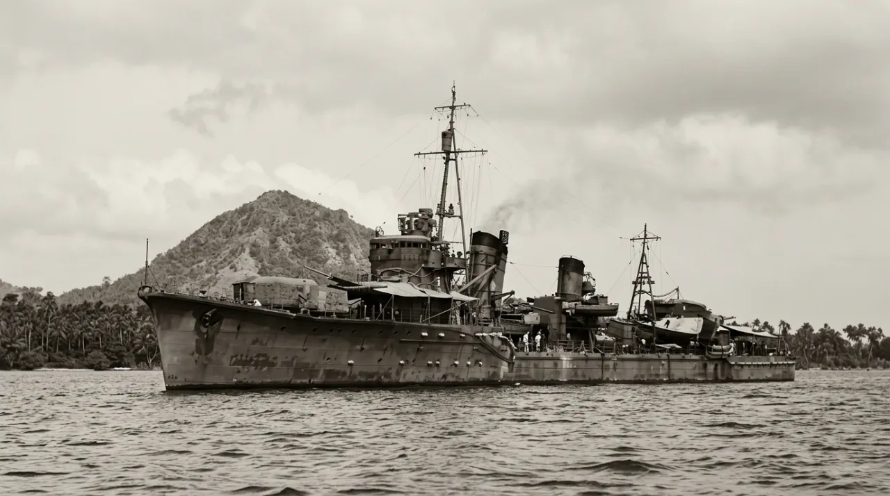 «Уракадзе» встал на якорь у берегов Брунея незадолго до битвы в заливе Лейте, 21 октября 1944 года