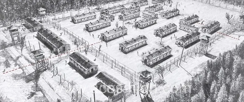 Секции, заборы, прожекторы. Формально лагерь, по сути идеально рассчитанная тюрьма под открытым небом. В бараках офицеры из Великобритании, Канады, Австралии, Южной Африки, Норвегии, Польши, Франции, Чехословакии, Нидерландов. Они умеют читать карты, чинить механизмы, планировать у каждого в голове план побега.