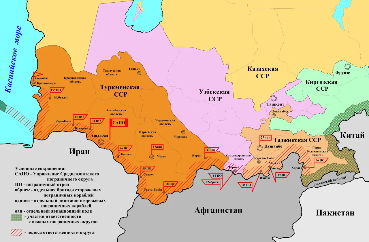 Зона ответственности и структура Краснознаменного Среднеазиатского пограничного округа