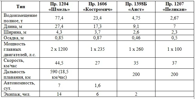 Кратко опишем историю создания, конструкцию и основные тактико-технические характеристики вышеупомянутых кораблей и катеров.