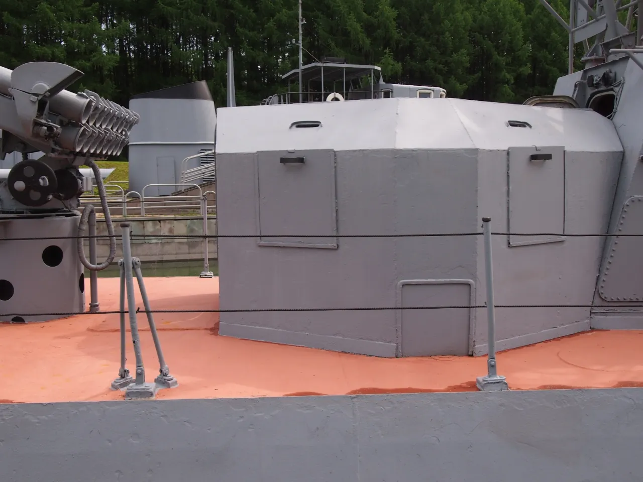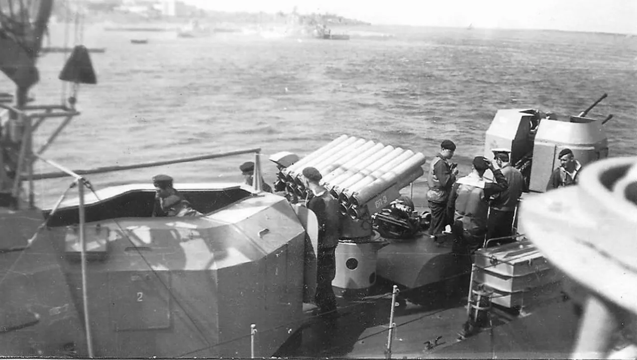 Кормовая часть «Шмеля» (слева направо): каземат с бойницами для автоматических гранатометов; установка БМ-14-17; кранец с боезапасом к БМ-14-17; артустановка 2М-3М