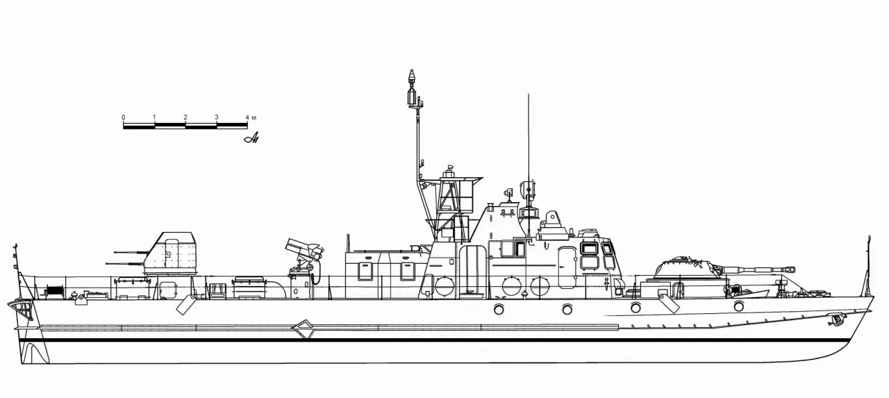 В бронированном «каземате» за рубкой устанавливались 4 гранатомета АГС-17 «Пламя». Для постановки мин на катере в корме устанавливались скаты и минные рельсы, на которых могло размещаться 10 мин типа ЯМ или 4 типа ИГДМ-500.