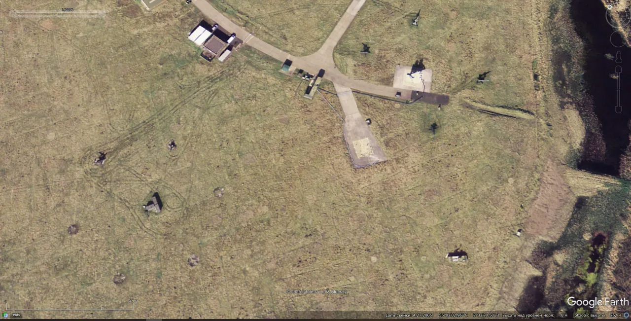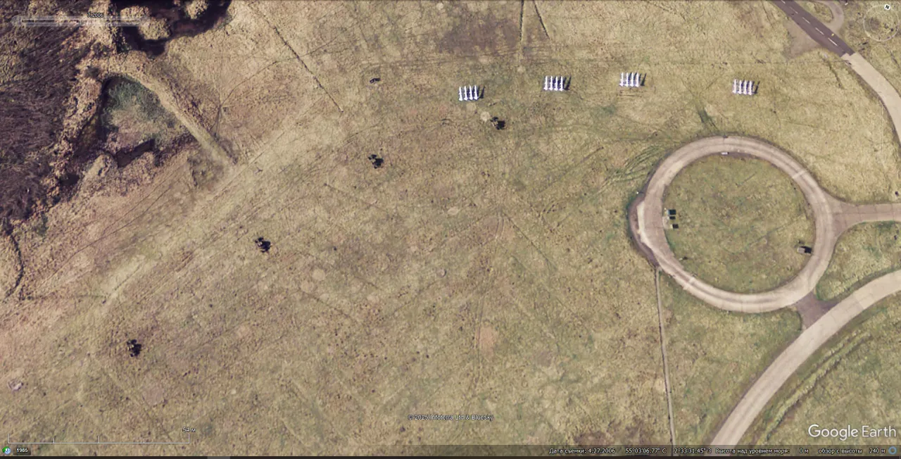 Судя по свежим спутниковым снимкам, уже примерно 20 лет на полигоне используются только инертные авиабомбы, что обеспечивает относительную сохранность мишеней и избавляет от необходимости засыпать воронки и собирать разбросанный взрывами металлолом.