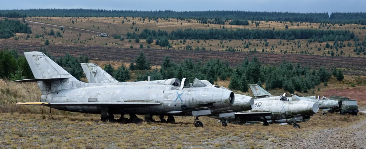 Также на полигоне имеется авиационная техника, относительно недавно снятая с вооружения. Например, в разных частях авиабазы Спадедам размещено несколько штурмовиков вертикального взлёта и посадки ВАЕ Harrier GR3/ GR7.
