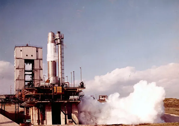 Баллистическая ракета средней дальности Blue Streak на стартовой позиции
