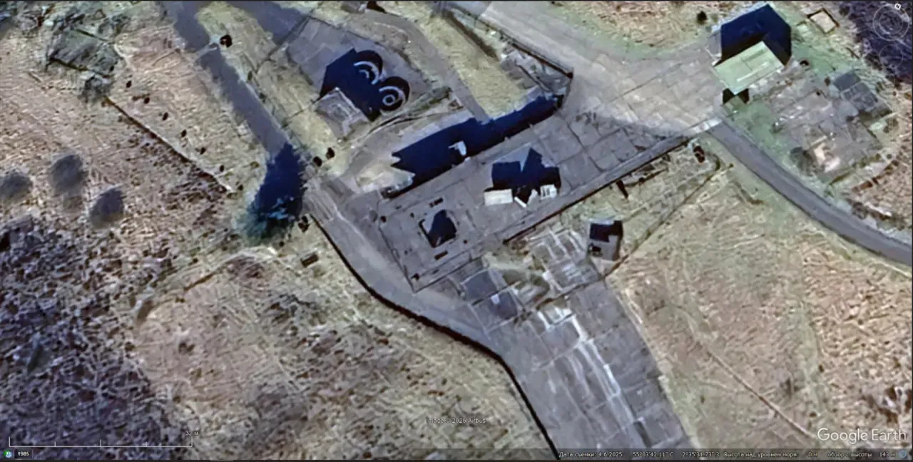 Спутниковый снимок Google Earth: многофункциональная РЛС подсвета и наведения 30Н6 на авиабазе Спадедам. Снимок сделан в апреле 2025 года
