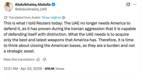 ОАЭ уведомили США, что в случае нехватки долларов США им, возможно, придётся использовать китайский юань или другие валюты для проведения транзакций, связанных с энергоносителями.