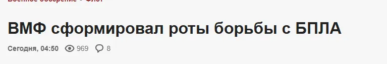 По структуре и оснащению морские роты близки к армейским аналогам. Каждая из них отвечает за объекты своего флота. Учитывая интенсивность применения дронов противником, проверить новые подразделения в деле придётся, вероятно, скоро.