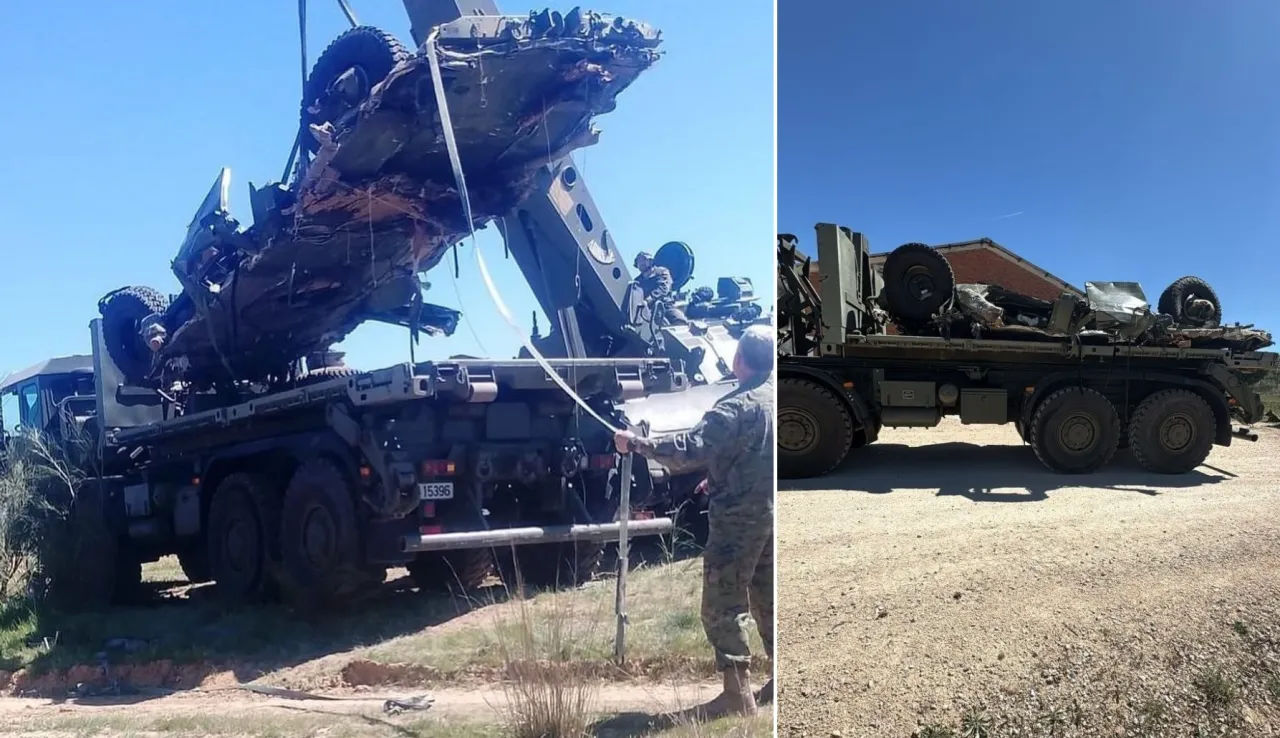В сети показано видео, на котором запечатлено неудачное приземление бронеавтомобиля URO VAMTAC в ходе учений испанской воздушно-десантной бригады BRIPAC на полигоне Каса-де-Уседа (провинция Гвадалахара).