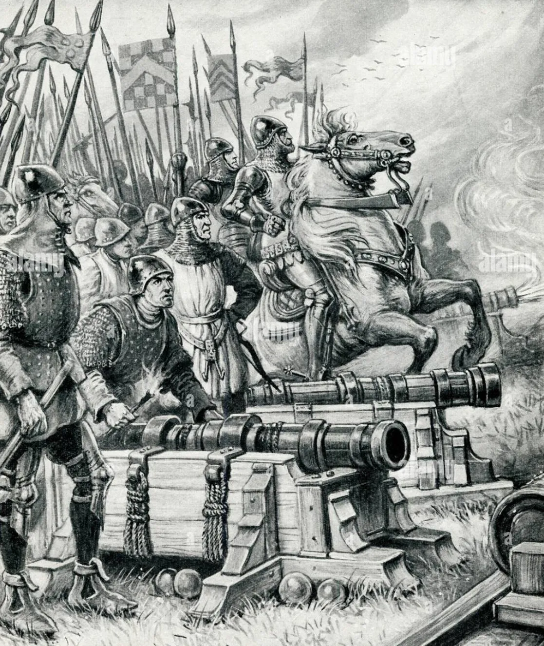 Первое заметное боевое применение пороха в Европе пришлось на Столетнюю войну (1337–1453). Конфликт Англии и Франции растянулся на четыре поколения и оказался удобным испытательным стендом — в том числе потому, что воевали в нём долго, упрямо и с обеих сторон с деньгами.