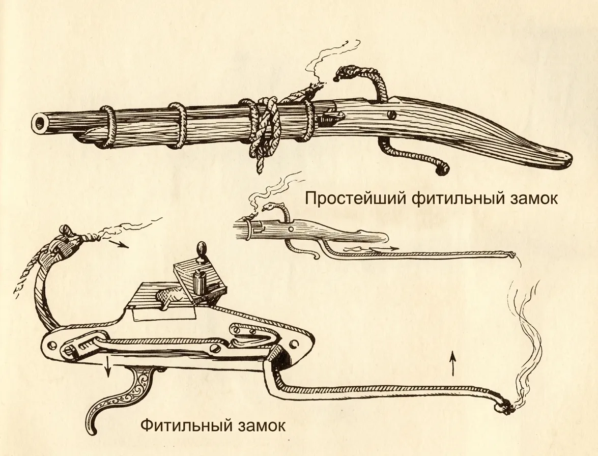Главная инженерная проблема раннего ружья звучит почти комично: как надёжно поднести огонь к пороху, не отрывая рук от приклада. Ответ — фитильный замок, по-английски matchlock. Маленький механизм, заменивший помощника с горящим прутом.